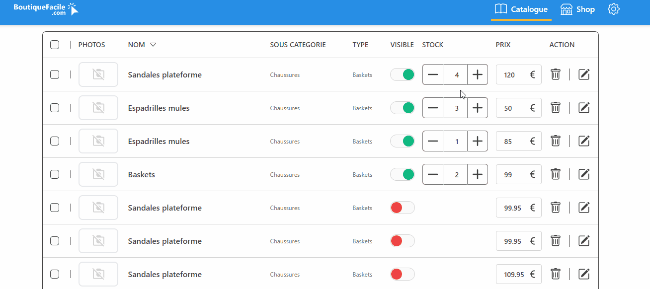 La gestion de votre boutique est simple et intuitive